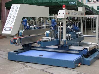 5、直線雙邊磨邊機(jī),特點(diǎn)是可同時(shí)磨削玻璃的兩條對(duì)邊,加工精度好,生產(chǎn)效率高,適用于大批量的玻璃磨邊生產(chǎn)。雙邊磨機(jī)按磨削玻璃寬度的不同可分為中小型和大型兩種,最大磨削寬度在兩米以下的稱為中、小型雙邊磨機(jī),最大磨削寬度在兩米及兩米以上的稱為大型雙邊磨機(jī),磨頭配置有十六、二十、二十二磨頭等。大型雙邊磨機(jī)一般為電腦控制,自動(dòng)化程度較高,適于磨削大尺寸平板玻璃,但是,這種設(shè)備的價(jià)格比較昂貴。