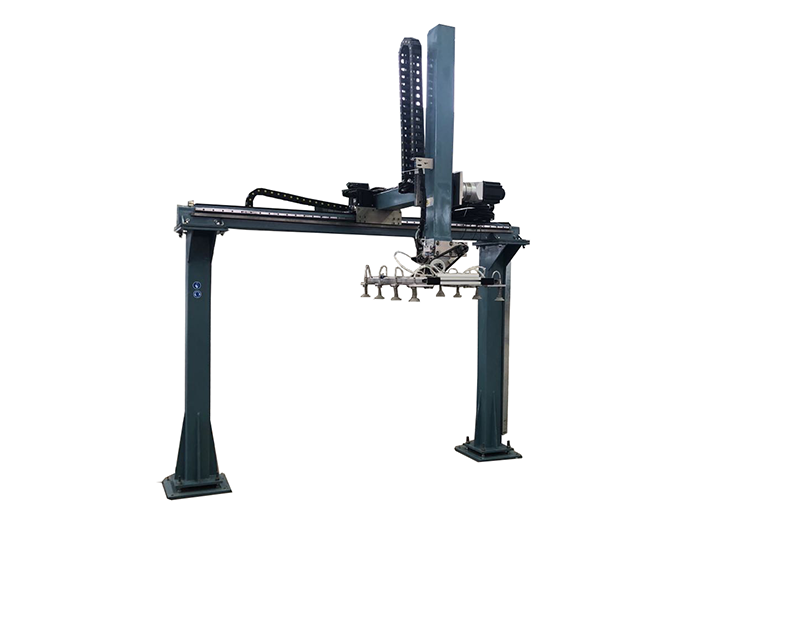 龍門式式結(jié)構(gòu);齒條、導(dǎo)軌傳動(dòng);伺服電機(jī)驅(qū)動(dòng);X、Z.、A三軸運(yùn)動(dòng)。觸摸屏控制;吸盤8個(gè)。