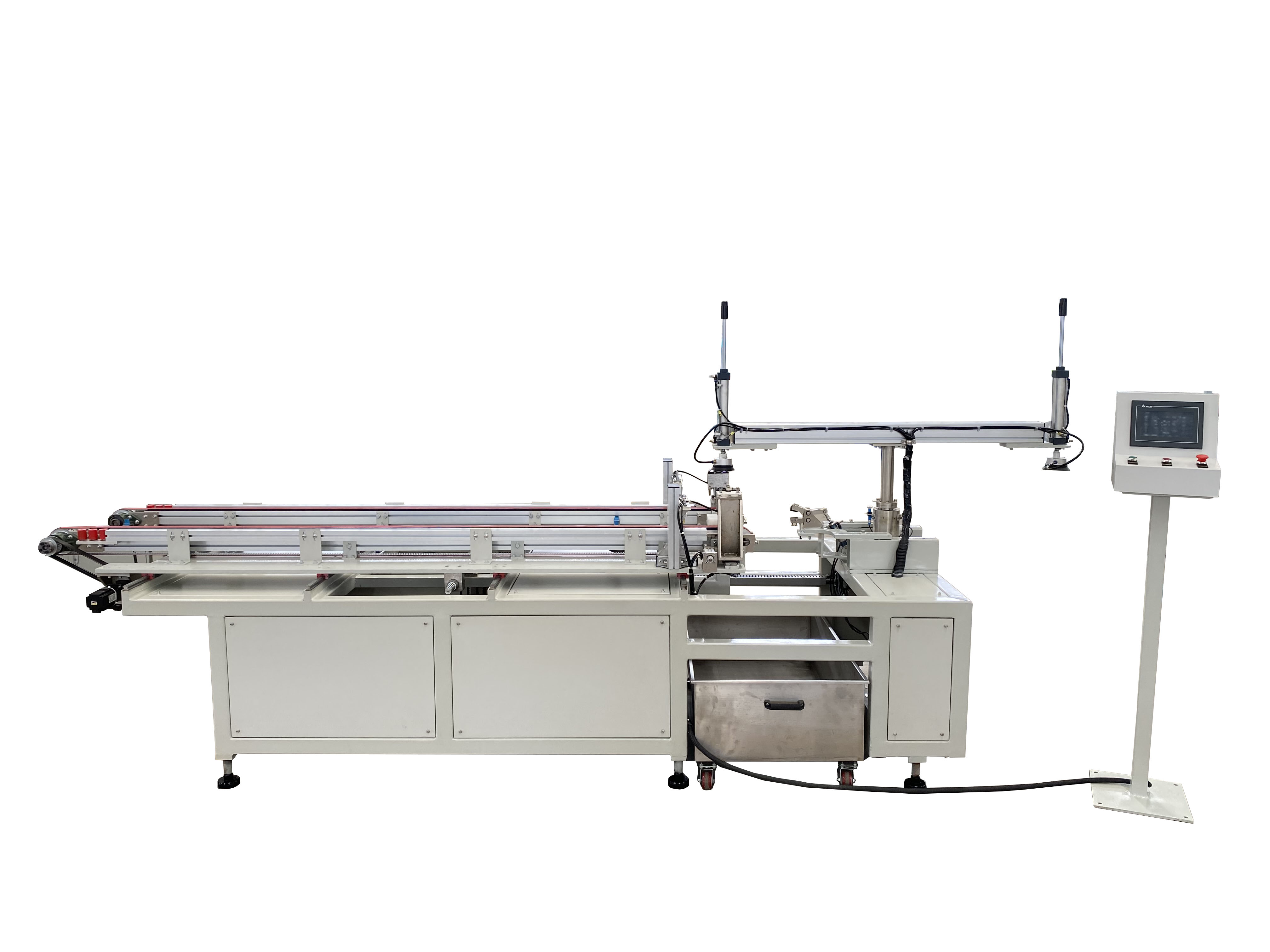 用于玻璃切割后的自動(dòng)掰斷,適用于圓形,橢圓形,帶R角的類矩形玻璃,可聯(lián)機(jī)使用,配套玻璃劃圓機(jī)或數(shù)控玻璃切割機(jī),節(jié)省人工,提高生產(chǎn)效率。設(shè)備自帶機(jī)械吸盤,可將加工后的成品玻璃抓取至后段工位(清洗機(jī)、磨邊機(jī)或傳輸臺(tái))。